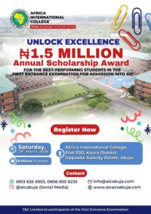 Dear Esteemed Parents/Guardians, We are pleased to inform you that the Africa International College (AIC) Entrance Examination will hold on Saturday, 28th March 2026. Kindly find below the guidelines to ensure a smooth and seamless process. Registration & Clearance (7:30 AM) Registration begins promptly at 7:30 AM. Parents/guardians are required to present the following documents for clearance before obtaining the